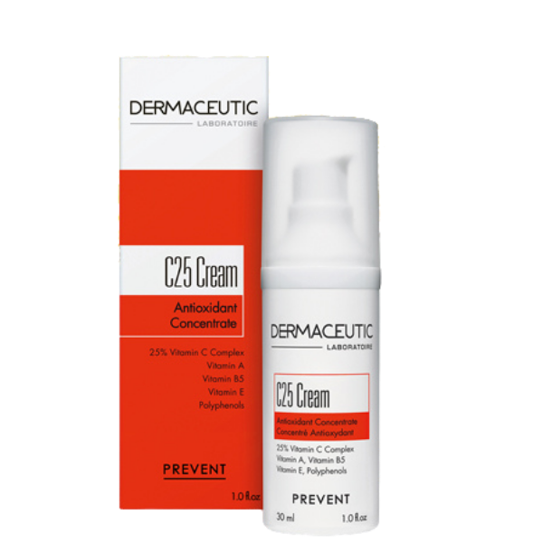 Deze Antioxidant dagcrème van Dermaceutic is geconcentreerd in antioxidanten die bijdragen aan het voorkomen van schade door vrije radicalen. C25 Cream wordt aanbevolen voor een onregelmatige teint en verlies van glans. Resultaat: De teint is geharmoniseerd en straalt met een natuurlijke uitstraling.